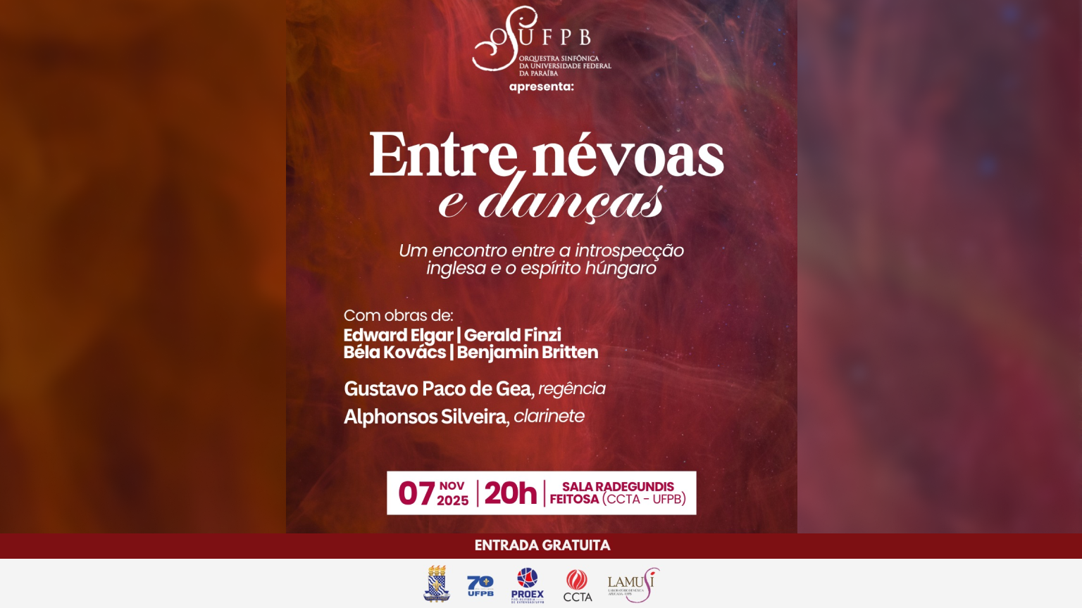 | 06/11/2025 | A OSUFPB realiza concerto “Entre Névoas e Danças” nesta sexta-feira, na Sala Radegundis Feitosa |