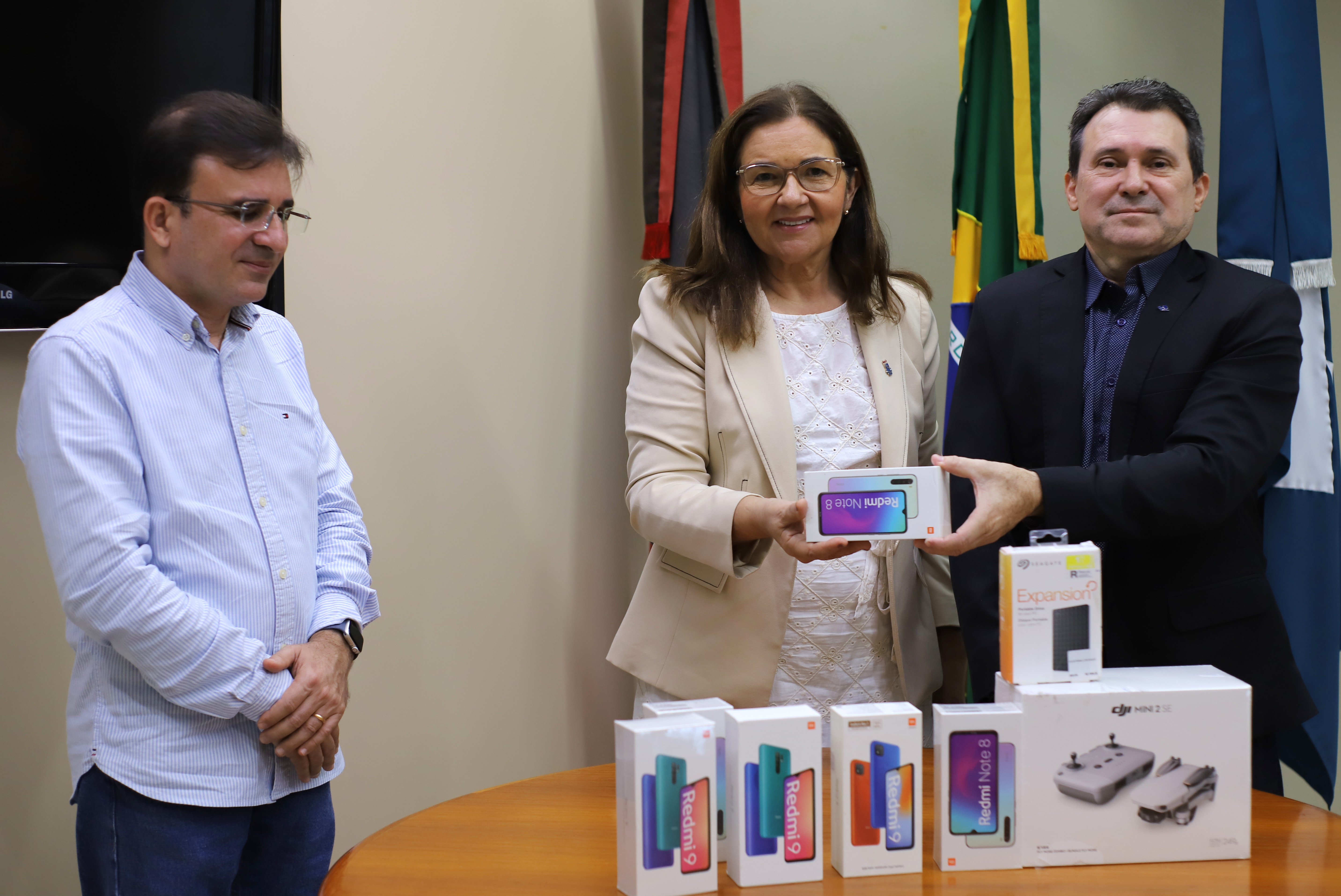 A Universidade Federal da Paraíba (UFPB) recebeu, na manhã desta quinta-feira (29), 35 equipamentos eletrônicos doados pela Receita Federal. A entrega foi realizada pelo delegado adjunto Francisco Gildázio à reitora Terezinha Domiciano, em visita à Delegacia da Receita Federal em João Pessoa. Por meio do Programa de Doação de Mercadorias, para itens apreendidos ou abandonados, a Receita destinou à UFPB 27 telefones celulares, três HD externos, três impressoras, um drone e um fone de ouvido.