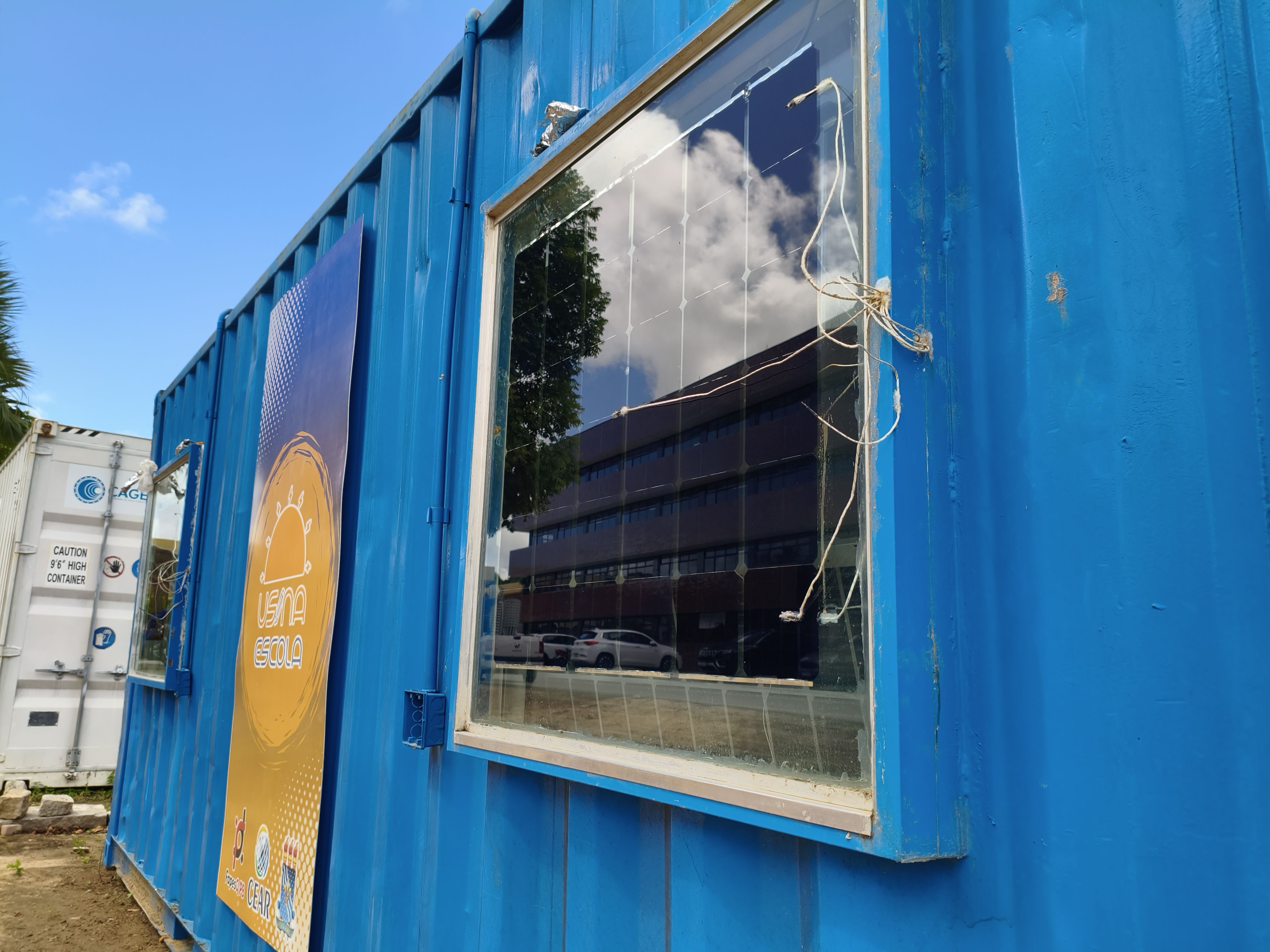 Detalhe de janela fotovoltaica, localizada em um container em frente ao CEAR, onde o grupo realiza experimentos