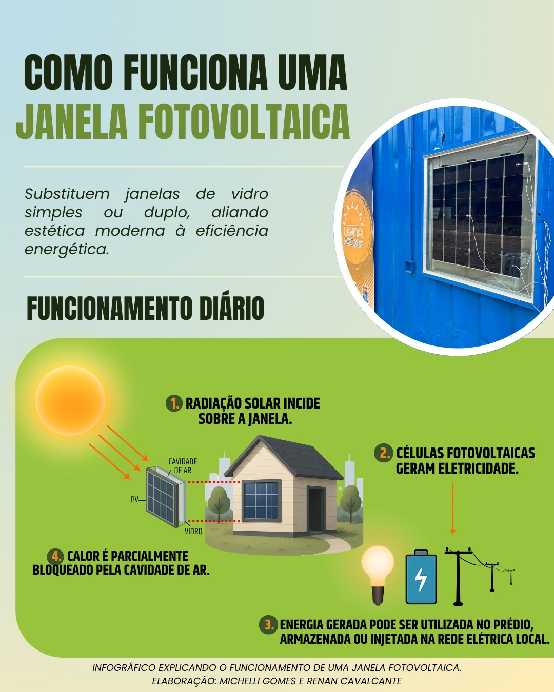 Nos últimos cinco anos, a utilização de energia solar cresceu de forma significativa no Brasil, já sendo a segunda maior fonte de energia elétrica no país, ficando atrás apenas da energia hídrica, segundo dados da Associação Brasileira de Energia Solar Fotovoltaica. Embora quando pensamos nesse tipo de energia, geralmente venham à mente aqueles painéis solares colocados sobre telhados de casas, existem outras aplicações desenvolvidas para aproveitar esse recurso tão abundante que é o sol, principalmente em estados como a Paraíba. É o caso das janelas fotovoltaicas, que aliam geração de energia sustentável com redução das temperaturas nos locais onde são instaladas.