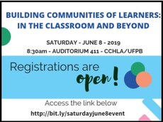 O Programa de Extensão "EFOPLI: Espaços para a Formação do Professor de Língua Inglesa", vinculado ao Departamento de Letras Estrangeiras Modernas (DLEM), realizará um evento para professores de inglês e estudantes de Letras Inglês neste sábado (8), a partir das 8h30, no auditório 411 do Centro de Ciências Humanas, Letras e Artes (CCHLA), Campus I. O tema do evento é "Building communities of learners: in the classroom and beyond".
