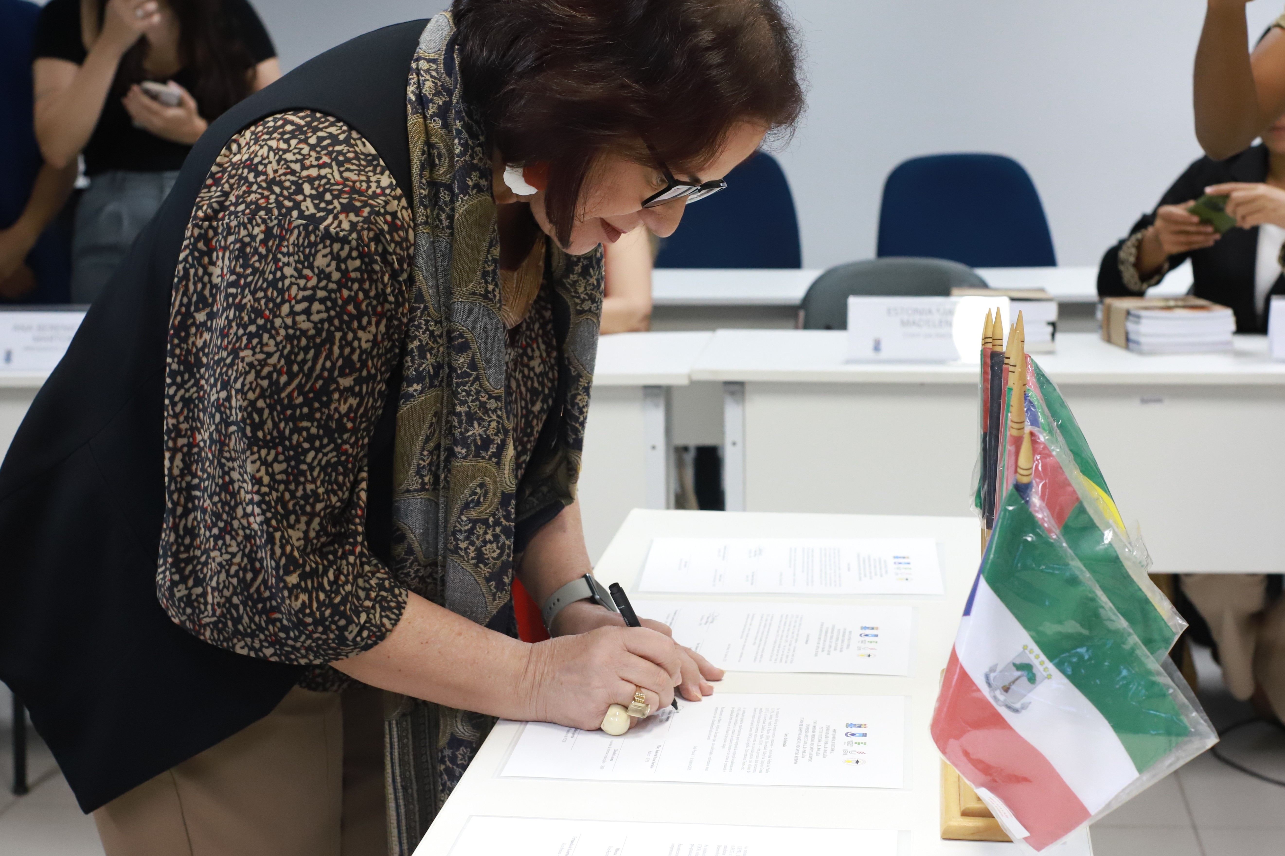 A presidente da Agência de Cooperação Internacional (ACI), professora Ana Berenice Martorelli, acompanhada da diretora de Relações Interinstitucionais da ACI, professora Ana Paulo Basso, informou que um dos objetivos da parceria com o Fundo de Timor-Leste é trazer alunos e professores para a aprendizagem do português.